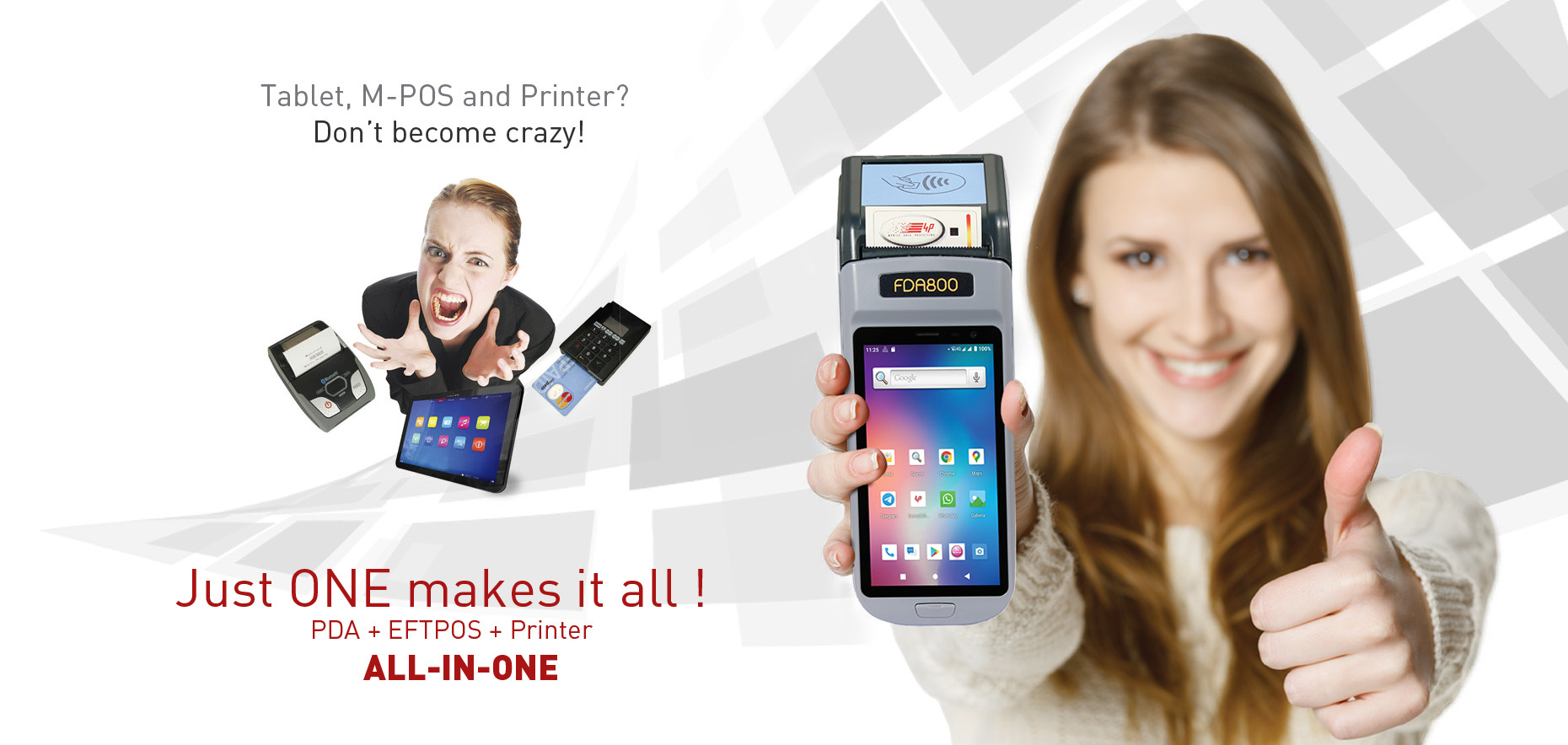FDA800 is a powerful multifunctional rugged handheld computer featuring a fully fledged Android smartphone with embedded EFTPOS for electronic payments.