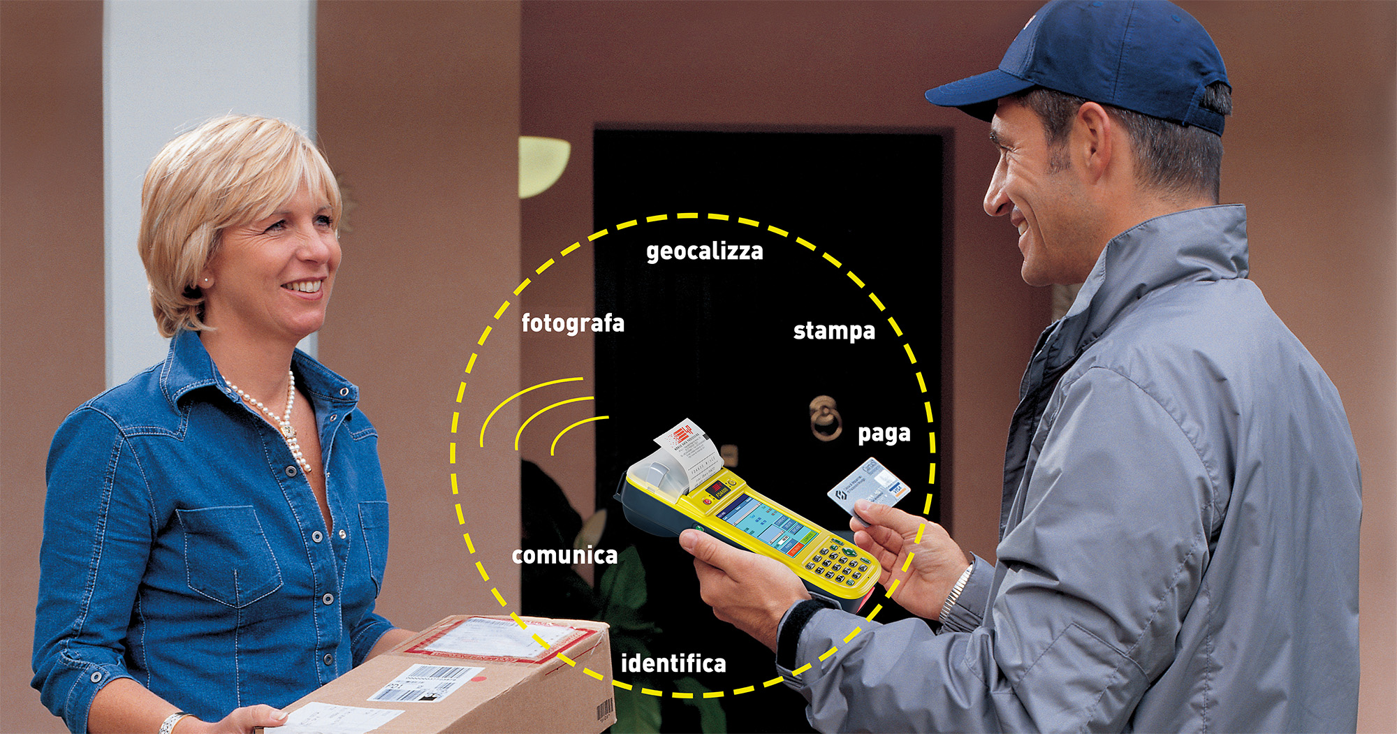 Con lo stesso computer palmare (SOLO UNO), i vostri operatori in campo possono raccogliere ordini, verificare la giacenza, identificare prodotti e pacchi, accettare pagamenti elettronici senza contante, stampare fatture e ricevute fiscali aggiornando in tempo reale il sistema centrale.